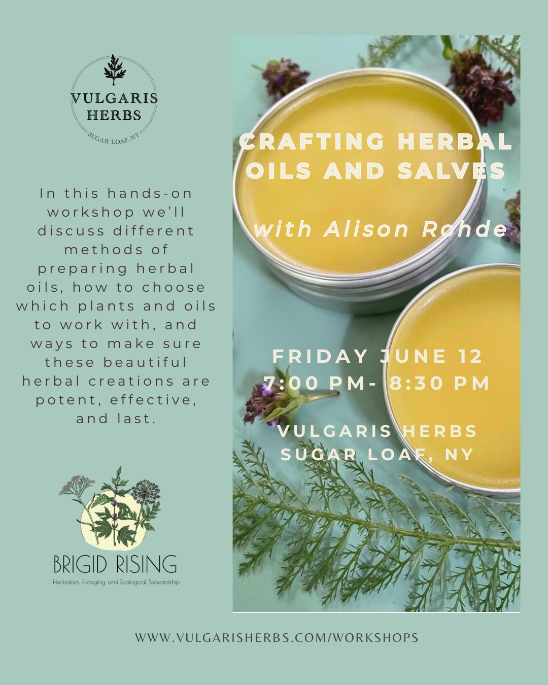 Herbal oils and salves are a simple, effective, and fun way to add more herbal goodness to your daily routine and keep your skin nourished, protected, and healthy. In this hands-on workshop we’ll discuss different methods of preparing herbal oils, how to choose which plants and oils to work with, and ways to make sure these beautiful herbal creations are potent, effective, and last. We’ll also learn how to turn our herb-infused oils into luscious salves. Each participant will leave with an herbal oil and salve made during class.